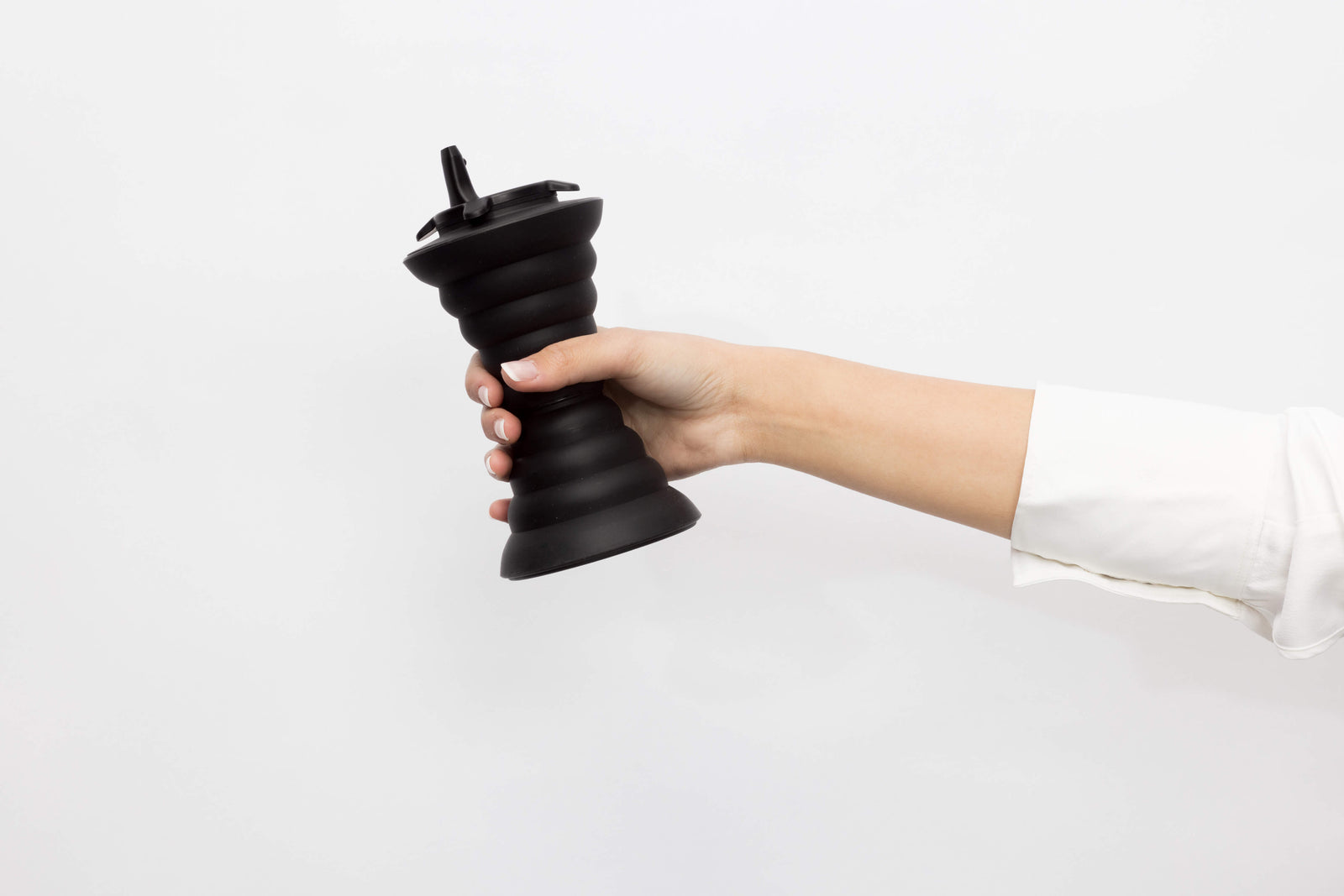 It is a hand-held portable bottle that collapses inwardly, so you wouldn’t have to worry about the size. It is made with FDA approved polyethylene and silicon materials that can conveniently fit in your pocket or purse.